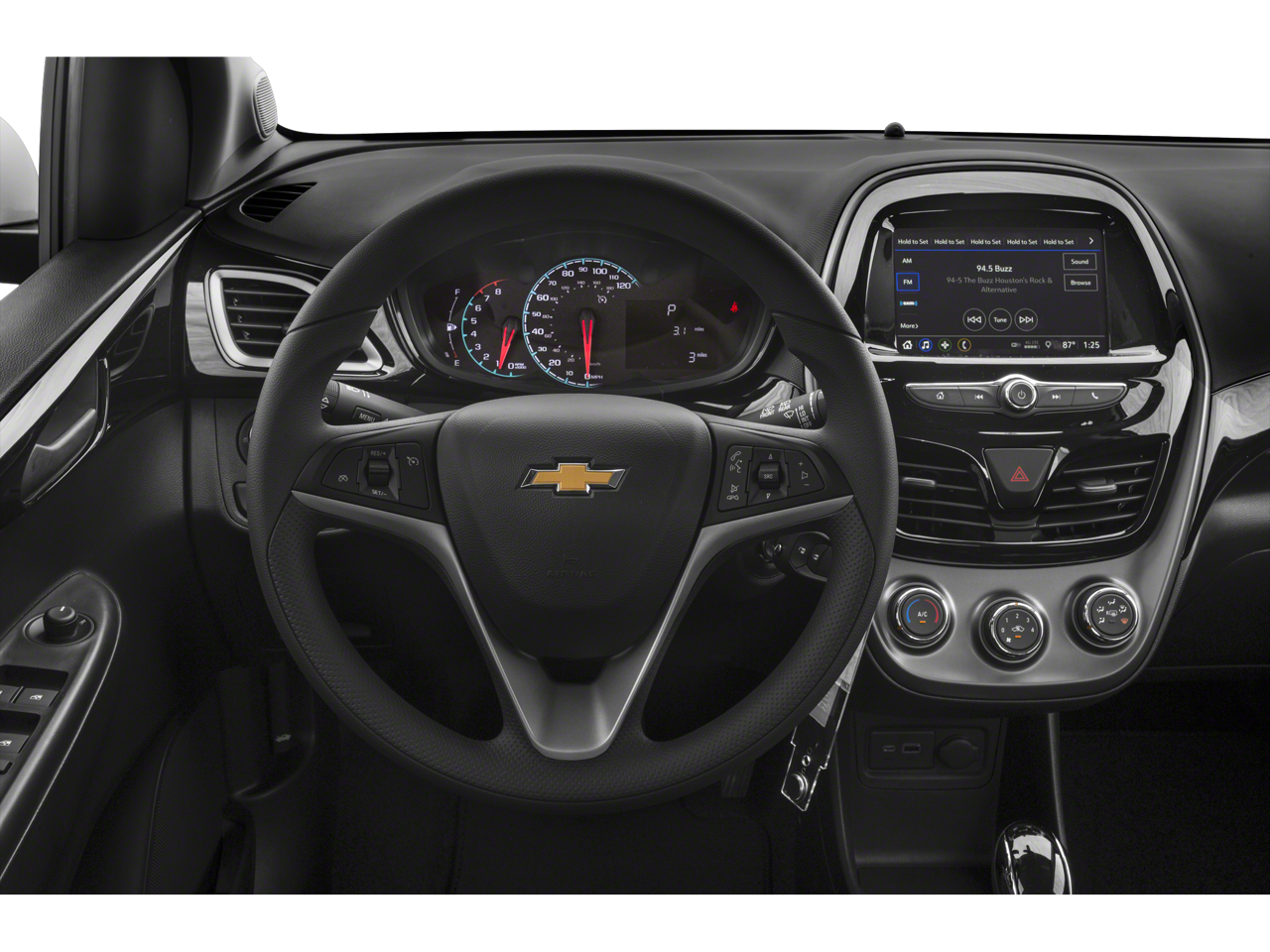 AUDIO SYSTEM, CHEVROLET INFOTAINMENT 3 SYSTEM, 7 DIAGONAL COLOR TOUCHSCREEN, AM/FM STEREO. Additional features for compatible phones include: Bluetooth® audio streaming for 2 active devices, voice command pass-through to phone, Apple CarPlay and Android Auto capable (STD), ENGINE, 1.4L DOHC 4-CYLINDER MFI (98 hp [73.07 kW] @ 6200 rpm, 94 lb-ft of torque [127.4 N-m] @ 4400 rpm) (STD), TRANSMISSION, CONTINUOUS VARIABLE (CVT) (STD). Chevrolet LS with Mosaic Black exterior and Jet Black/Jet Black interior features a 4 Cylinder Engine with 98 HP at 6200 RPM*.